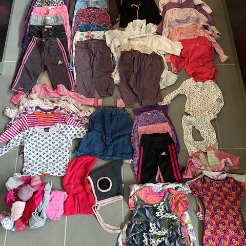 1 par ridebukser, 1 t-shirt og shortssæt/tennissæt, 4 par sko (1 par badesandaler str 37. 1 par sorte Nike sko str. 38,5 (kun brugt indendørs til idræt),1 par sorte Adidas Superstar str. 37 1/3, 1 par badesko str. 37), 1 halsedisse, 1 taske, 7 par strømper, 3 par strømpebukser, 6 toppe, 1 badedragt, 3 bikinier, 1 vinterjakke, 1 morgenkåbe, 3 hoodies, 1 strikbluse, 4 kjoler, 4 langærmede bluser, 2 korte buksedragter, 1 nederdel, 2 korte todelt natsæt, 4 par shorts, 3 t-shirts, 7 strop toppe, 1 langærmet sportssæt med reklameprints (trøje, jakke, bluse, bukser), 3 sportssæt - t-shirt og bukser - 2 DK fodboldbluser. Sender gerne - køber betaler. Kan mødes i 2450 KBH i dagtimerne hver 14. dag for afhentning.