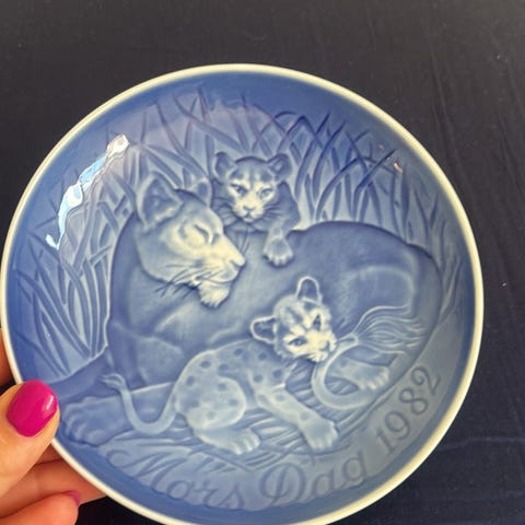 Beskrivelse: Platten viser et kærligt motiv af en hoppe med sit føl på en mark. Teksten "Mors Dag 1972" er indarbejdet i bunden af motivet.