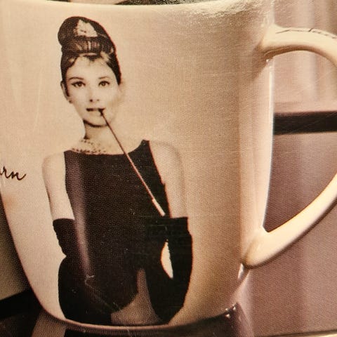 Marilyn monroe vase med sort-hvide motiver med røde læber som detaljer. Ca. 76 cm.