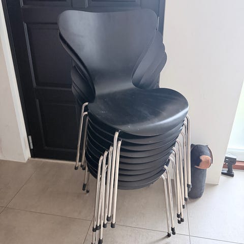 Fritz Hansen Arne Jacobsen stol sort med kromstel