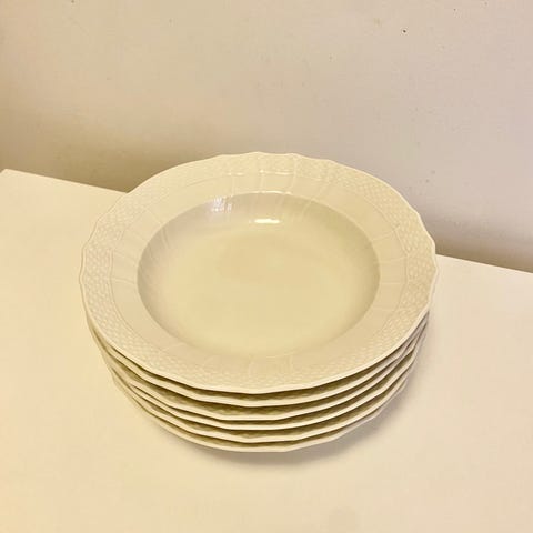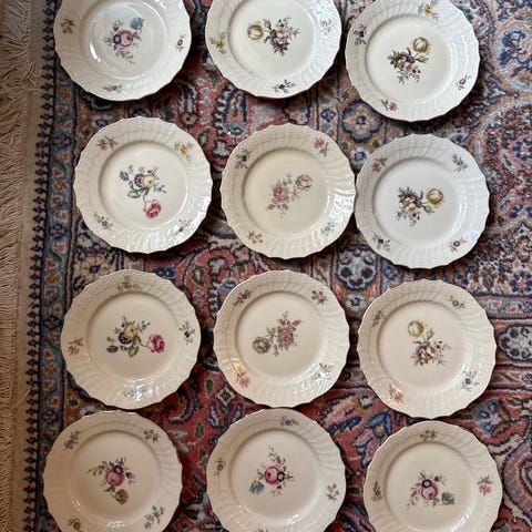 Tallerkenerne er brugte, men fremstår i pæn stand. Prisen er 250,- samlet.