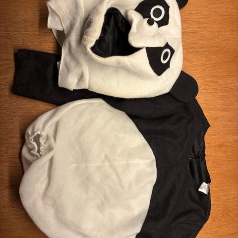 Panda Kostume Børn omfatter en sort-hvid panda børnedragt med et par sorte benvarmere og en kjole med hætte.