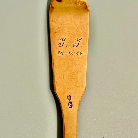 3 tårnet sølv kagespade ske med dekorativt mønster