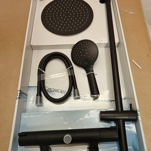 incl 2 - grebs termostat brusearmatur / hovedbruser 20,5 cm / rund håndbruser/ bruseslange 160 cm / bruseholder / brusestang.