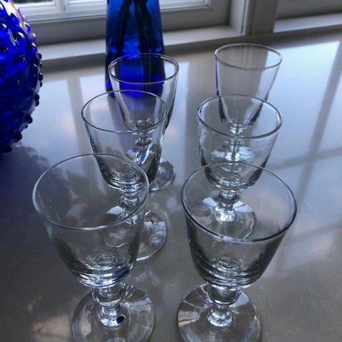 6 gamle franske vandglas - lys grøn urania. Kummen er optisk stribet. Kan evt. sendes.