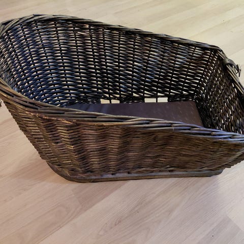 pil, gitter metalgitter, plastoverflade, lukkes med rem, metalholder til styr også plastoverflade, bæreevne op til 5 kg, 45x36x48, H. er når gitteret et på.jeg har sat en ny nitte i remmen mellem stængerne til styret ,ikke en original, men det virker, og enkelte steder er der lidt rust på gitteret, kurven er hel og intakt, ingen pude. sender gerne, dog ikke med fiks færdig, porto oveni