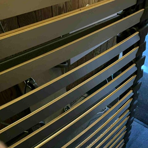 Pæn og velholdt elevations sengebund med stål ben. Virker rigtig godt.