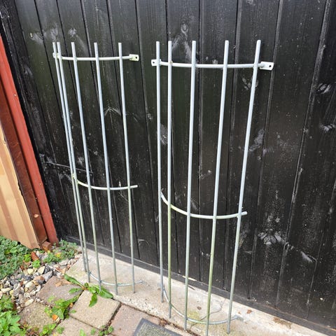 Et par espalier af galvaniseret metal / stål. L. 165. B.41 cm. Max dybde 20 cm. Sælges kun samlet.