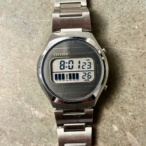 Rigtigt flot Citizen day/date quartz. Måler 37x42mm. Bemærk udgave med krone kl. 16. Måler 20mm mellem horn. Uret går som et quartzur skal, quickset fungerer også. Uret kan afhentes på Sydsjælland, alternativt sendes. Jeg rydder ud I samlingen, så ingen bytte.