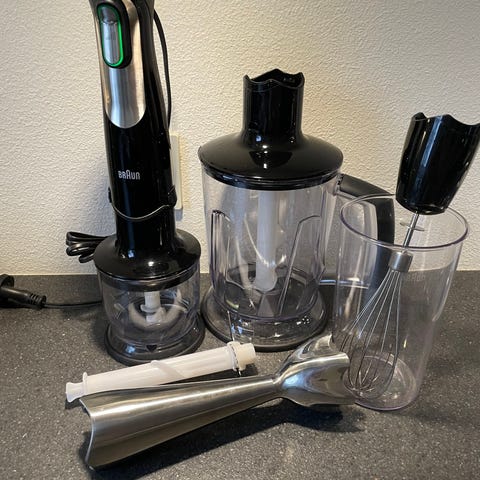 Fejlkøb. Nærmest fuldstændig ny Braun stavblender købt 20/10 2025, kun brugt ganske få gange, kvittering haves. Alt tilbehør medfølger som på billedet. Nypris 653 kr.