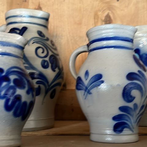 Askebæger med lyserøde striber. Pris 30 kr.