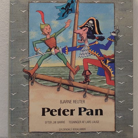 Bjarne Reuter Peter Pan bog med illustrationer af Lars Lauge. Bogen indeholder tekst baseret på J.M. Barries fortælling og er udgivet af Gyldendals Bogklubber. Indeholder en fortælling om Peter Pan og hans eventyr i Neverland.
