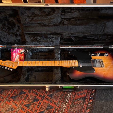 Fender Telecaster custom made in Mexico den har det klassiske design fra 1972 den som Keef Richard fra Stones spillede på den lyder virkelig godt og er meget let super fed guitar både til øvet eller begynder eller hvis du bare vil have en custom som ikke er for dyr den lyder virkelig godt kom og prøv