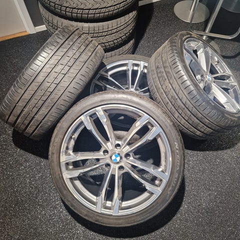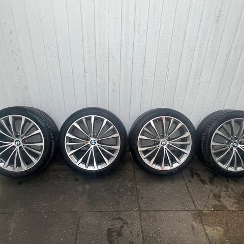Komplet sæt 20" BMW M Performance Sommerhjul med Michelin Pilot Sport 4, har kørt på BMW 330e Touring 2 Somre, Bagdæk er netop skiftet til helt nye og har aldrig været ude at køre, fordæk har 5,49 mm slidbane tilbage, Bemærk at bagdæk er bredere end fordæk. Bagdæk 255/30ZR20 92Y, Fordæk 225/35ZR20 90Y. Sættet er ekstrem velholdt og fremstår næsten som nyt, på nær 2 små skrammer (Se de 2 sidste billeder)