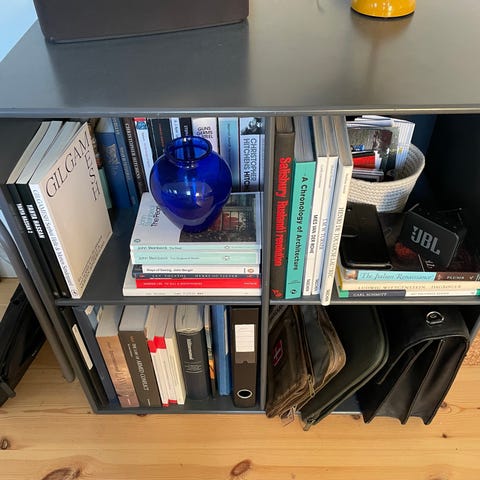 To rum med hylde til magasiner/bøger, kan skrues ud.