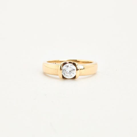 Solitairering i 8K guld med en zirkonia, str. 54-Guld