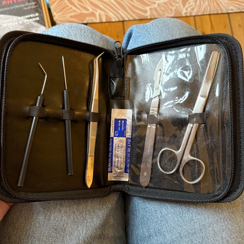 Jeg sælger et dissektionsæt (for eksempel til at studere biologi).