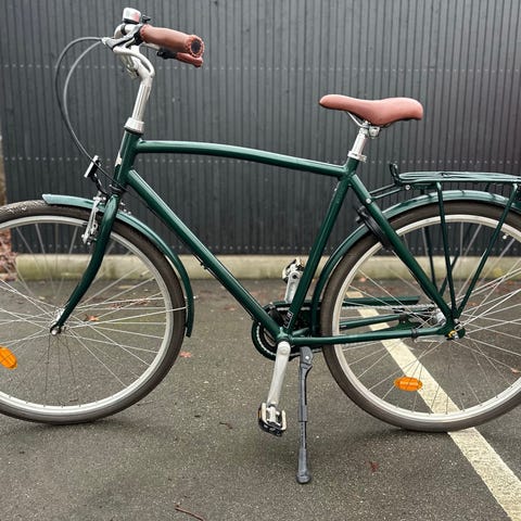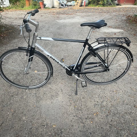 Rigtig pæn kvalitets alu cykel med 3 indvendige gear i dansk design. 28 tommer hjul og 64 cm stel. Cyklen har fået 2 nye punkterfrie dæk, ny fastmonteret ringlås, ny krank, nyt tandhjul foran og bagved, nye pedaler, ny kædeskærm, nye pedalarme, ny kæde, ny slange, ny sadelpind, 2 nye lygter, ny ringeklokke, nye kabler og nye reflekser. Derudover er der pæn håndbremse, alu styr, alu fælge, alu støtteben m.m. Håndbremse på forhjul og fodbremse på baghjul. Dækkene har en hård kerne, der gør at man næsten aldrig punkterer. Passer en person med højde på ca. 178 til 200 cm. Cyklen virker perfekt. Gearene virker selvfølgelig også, som de skal. Fast pris. Har ikke Mobilepay.