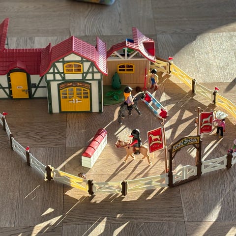 Stor samling playmobil pakke til den hesteglade pige der er minimum 3 pakker playmobil som sælges samlet nok for nypris ca. 1500kr. ( stor rideturneringsplads model PL 70337 og country car med hestetrailer må det være samt traktor). De to af pakkerne er stort set ubrugte (kun leget med 2-3 gange, da hesteinteressen var meget kortvarig. Traktoren er mere brugt som er brugt af min søn, men synes den passer godt i denne pakke.