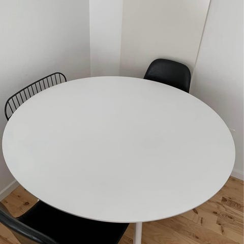 Dette elegante runde spisebord fra Rowico, er udført i et moderne skandinavisk design. Spisebordet er designet med en bordplade, som er udført i børstet sortmalet egefiner. De børste sortmalet egefiner i bordpladen, bidrager til et moderne og elegant design. Bordpladen bliver kombineret med elegante ben, som er udført i pulverlakeret sort metal.