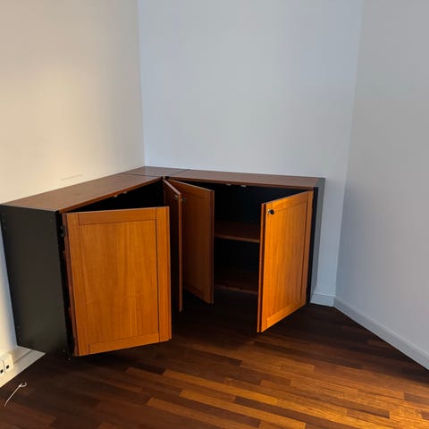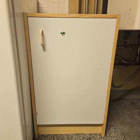 Skab i lyst træ med låger og hylder