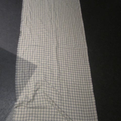 Mærke Object, str. 193 x 71 cm uden frynser, Acryl/uld, Næsten som ny, Har en lille plet, men tror det kan vaskes væk. Se billede 2 og 3 for bedste farve