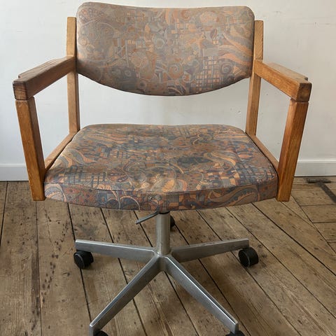 Retro antik skrivebordsstol fra Tyskland i træ. Kan indstilles i højden og har fjedre under sæde og vippemekanisme i ryglænet. Så speciel og smuk, men vi kan desværre ikke bruge den længere.