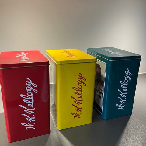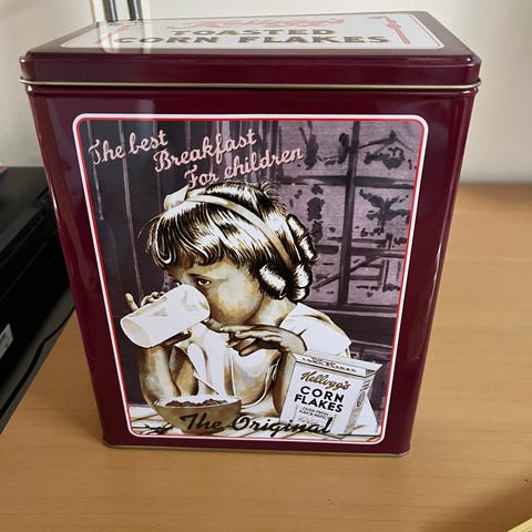 Kellogg dåse - den måler: 14 x 9,5 x 20,5 cm