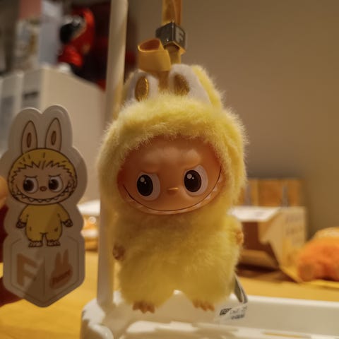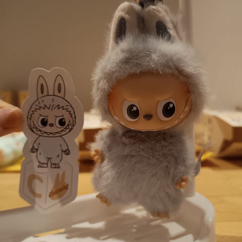 Den er naturligvis ægte og har kvitteringen fra en rigtig Popmart butik. Sender pænt og forsvarligt. Se gerne mine andre annoncer,- der kan være 3 kg i pakken.
