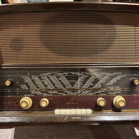 Bang & Olufsen JET-505 radio med træ kabinet. En fin gammel radio, sjælden udbudt til salg