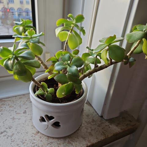 Jeg sælger dette flotte Paradistræ (Crassula ovata), også kendt som pengetræet eller jadeplanten, en populær sukkulent stueplante.