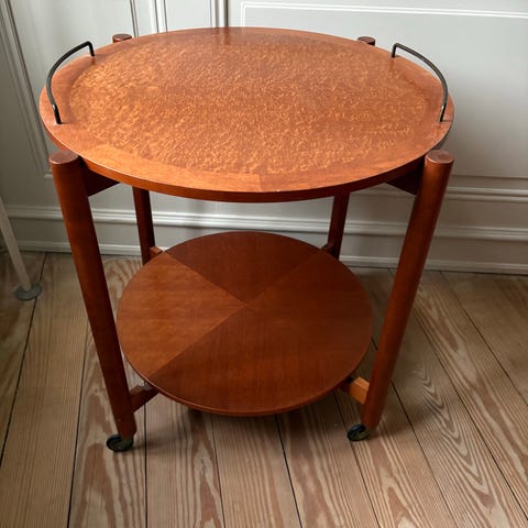 IKEA Achille Castiglioni sofabord med rund bordplade i træ og ben i metal. Bordet har et enkelt og funktionelt design, der passer til forskellige boligindretninger.