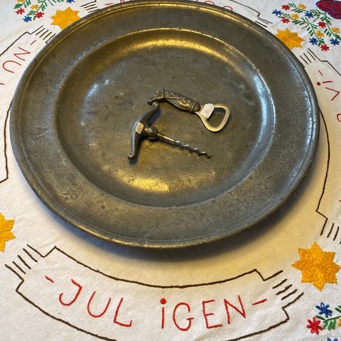 Proptrækker, metal og tin, 100 år gl., antik proptrækker