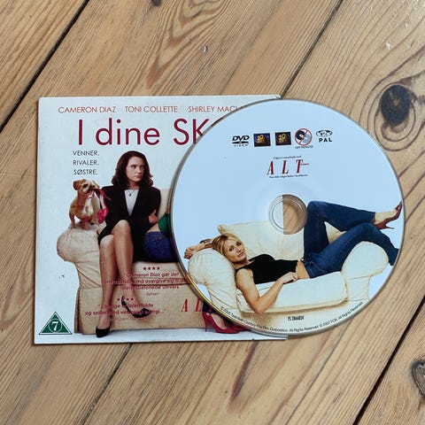 DVD filmen 'I dine sko' med skuespillerne Cameron Diaz, Toni Collette og Shirley MacLaine. Filmen indeholder dansk tekst og har en spilletid på cirka 1 time og 50 minutter. Genre: drama og komedie.
