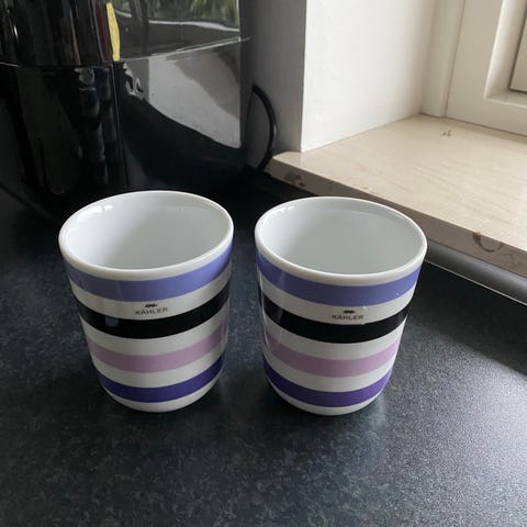 Kähler kaffekrus i sort. Krusene har en enkel og funktionel form, velegnet til servering af kaffe eller andre varme drikke.