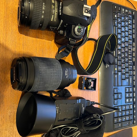 Der medfølger Nikon 35-70 Objektiv - det går lidt stram i Zoom derfor følger det med UB. Der medfølger et Opladet Batteri.