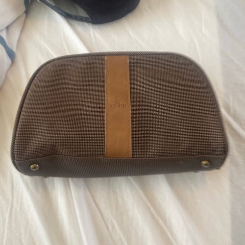 Toilettaske, British Airways First class amenity kit, Fra British Airways første klasse i Anya Hindmarch design. Måler ca. 15 x 11 x 7 cm. Kunstlæder der er designet ret stift.