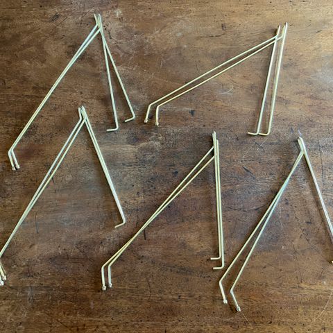 5 messing bøjler- tidligere brugt til teaktræshylder - men kan bruges til andre hylder hvor du gerne vil have et enkelt pænt ophæng👌