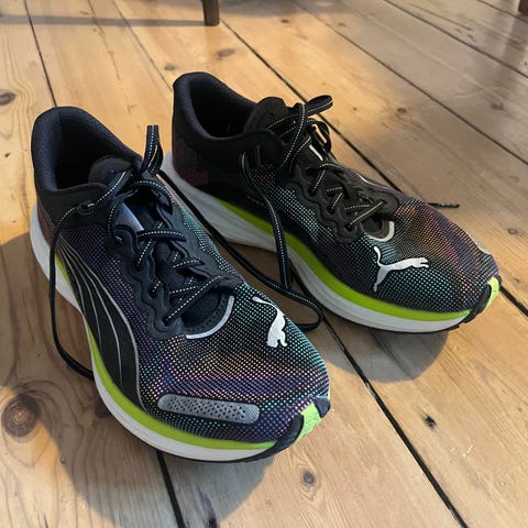 Silhuetten af Puma Velophasis er en hybrid fra 2000'erne, der er inspireret af Pumas historiske performance-løbeserie. Denne version har en åndbar mesh-overdel sammen med detaljerede gradientoverlejringer og en gennemskinnelig støbt TPU.