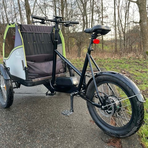 .El-ladcykel af mærket Kangaroo / Winther med stor frontkasse. Velegnet til familier og sikker transport af børn i byen