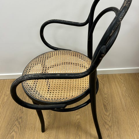 Original Thonet lænestol med fodskammel. Stof i uld. Brugt, men i god stand.