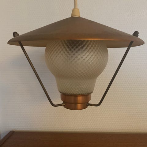 Smuk lampe i kobber og glas.
