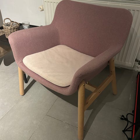 Lænestol fra IKEA sælges. Den er meget lidt brugt. Dog er der lidt pletter på sædet som jeg tænker kan tørres af. Kan hentes i Gentofte tæt på IKEA