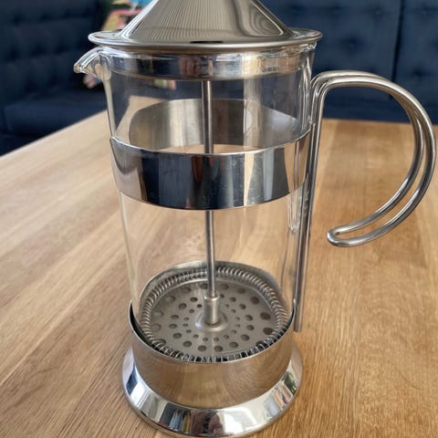 Næsten ny. Brugt max 3 gange. Den rummer 1.5 l, 12 kopper. Ekstra sikkerhedslås, så låget ikke falder af.