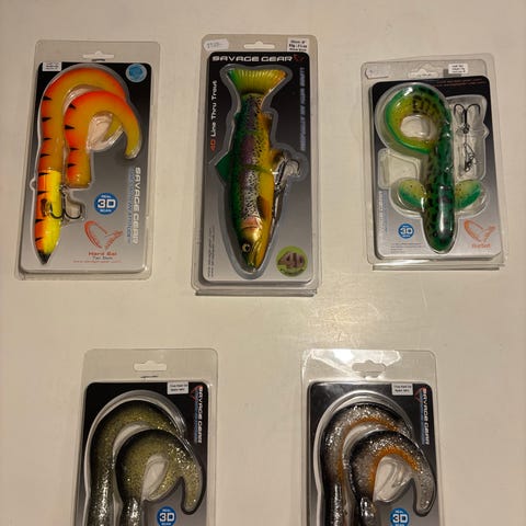 Agnene og boksene er fra Savage Gear, Rapala, Abu Garcia, Dam osv.