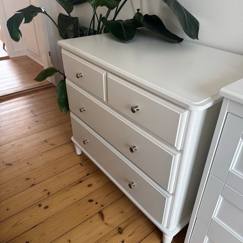 Meget fin og elegant kommode. Super god kvalitet og meget slidstærk. Købt i Ikea for år tilbage. Den dyreste de havde, Tyssedal hedder serien. Meget, meget lækker og rummelig. Sælges desværre hurtigt og billigt, da vi er ved at flytte.