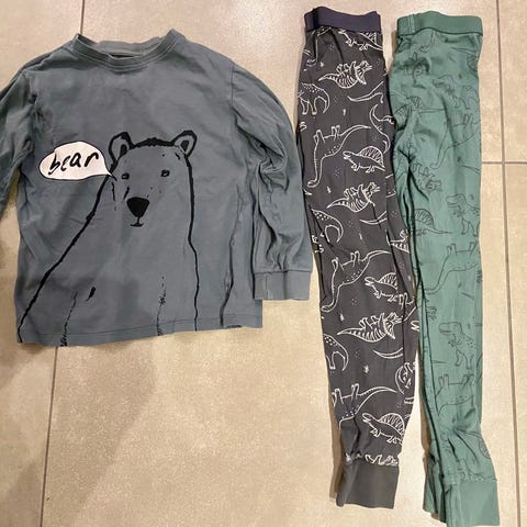 Blød og varm børnepyjamas i klar gul farve med sødt bamsemotiv. Sættet består af en hættetrøje og matchende bukser i blødt, plysset materiale, som er behageligt mod huden og perfekt til kolde aftener og nætter.