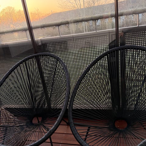 Sæt med 2 sorte Acapulco stole med flettet sæde og ryg. Stolene har rund form med åbent flettet design, hvilket giver god ventilation. Velegnet til indendørs og udendørs brug.