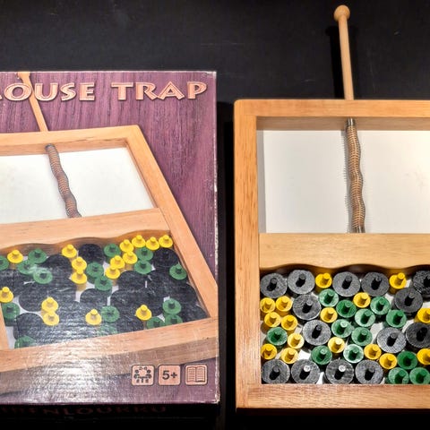 Underholdende og nervepirrende spil, hvor man kæmper om pointene ved at fjerne brikker fra spillet, uden at fjederen bevæger sig