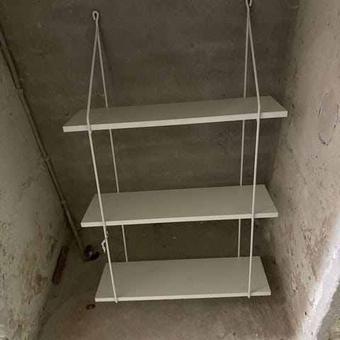 Flot hvid hylde reol med lidt brugsspor. Fejler ellers ingenting. Indeholder 2 sider og 3 hylder. Sendes ikke og afhentes i Ishøj.